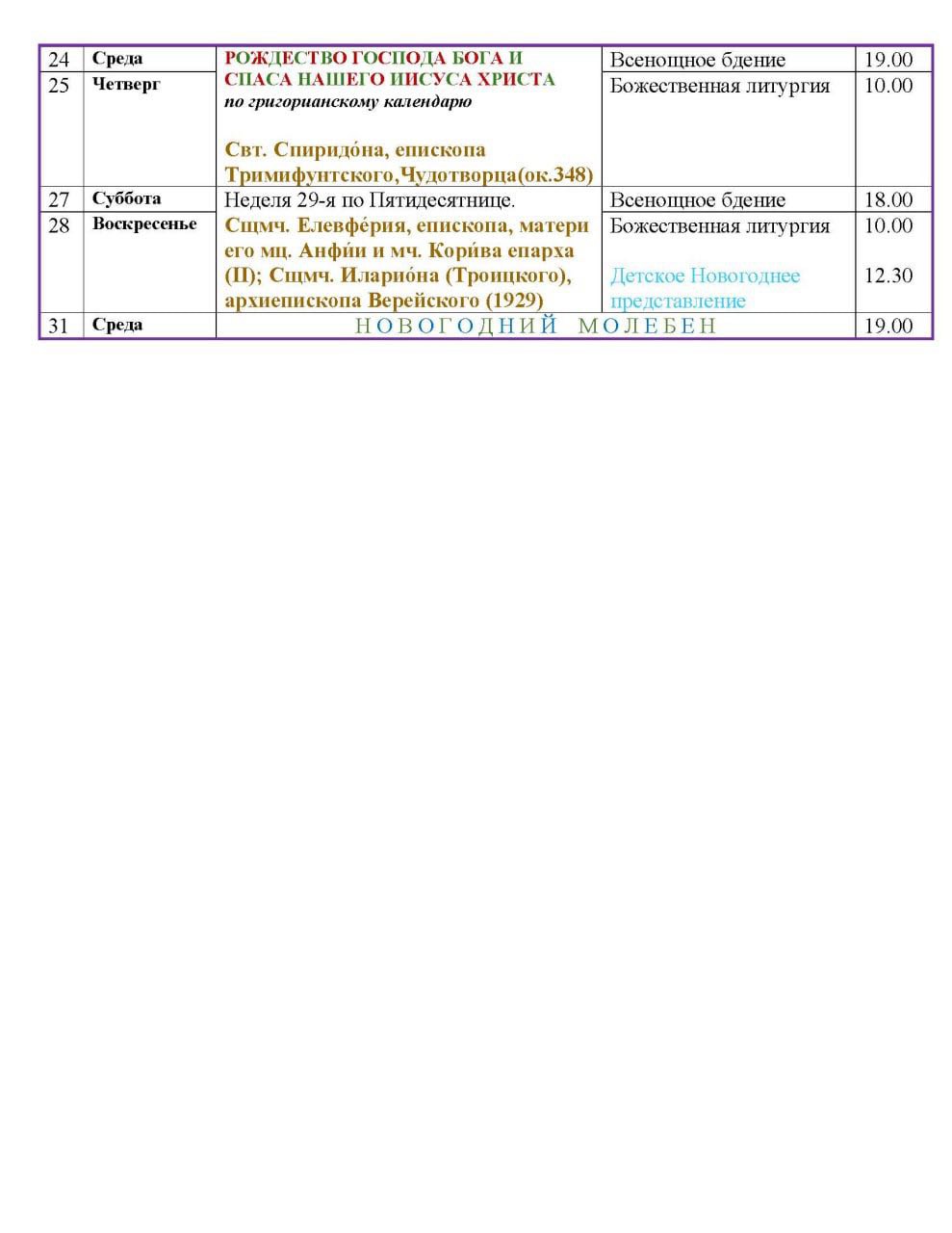 РАСПИСАНИЕ БОГОСЛУЖЕНИЙ НА Декабрь 2025